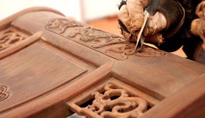 流程三雕刻工序 為了讓紅木家具看上去更美觀(guān),在木工工序完成之后一般都會(huì)用一些或簡(jiǎn)單或復(fù)雜的雕花來(lái)進(jìn)行裝飾,也就是行業(yè)中所說(shuō)的雕刻紋飾。雕刻紋飾必須在“認(rèn)榫”完成后進(jìn)行,因?yàn)椤罢J(rèn)榫”時(shí)需要修整,如果先做好雕花再開(kāi)榫,紋理很難保證雕花部件都在同一平面上,而此時(shí)為了保證雕花...